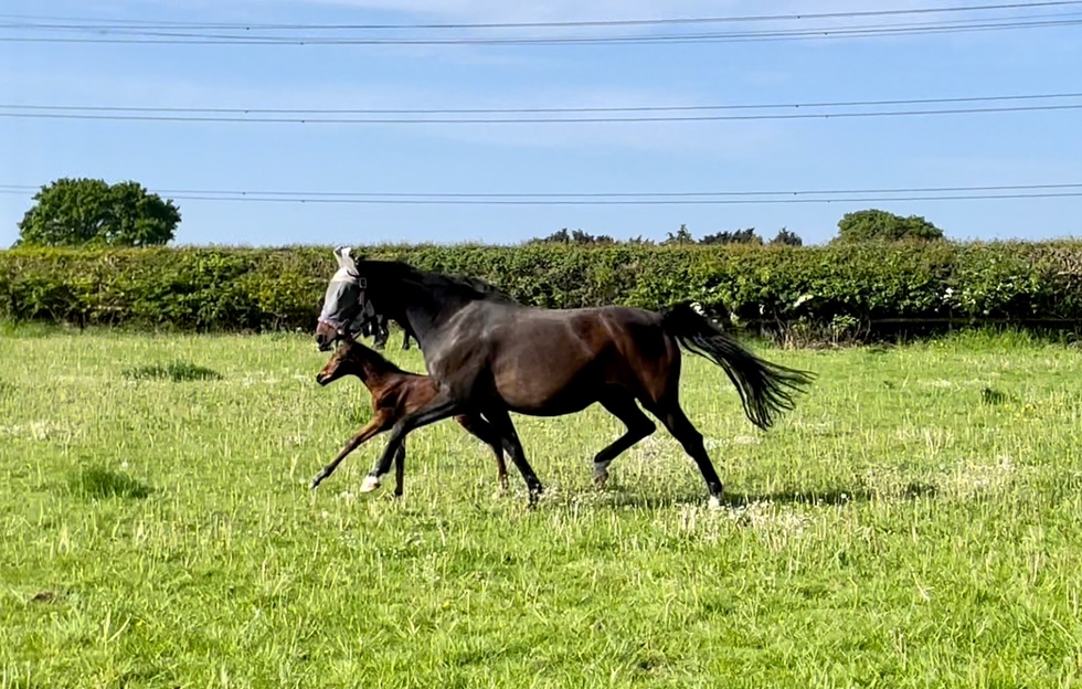 a lovely uphill canter developing good reach and showing a lot of impulsion