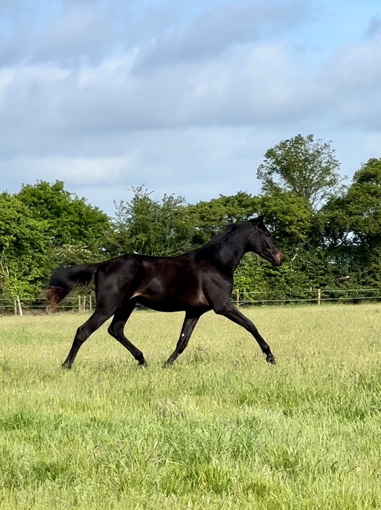 8.2 GOLD a lovely elegant foal with long legs and an excellent, expressive canter. as she grows and learns to relax more over her back, there will be a lot more to come from her in trot and walk. Overall she is showing lovely potential for the future