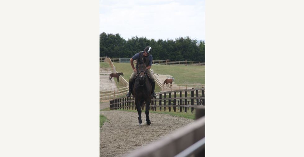 showing a nice rhythm, now needs to relax a little more over the topline to develop more reach