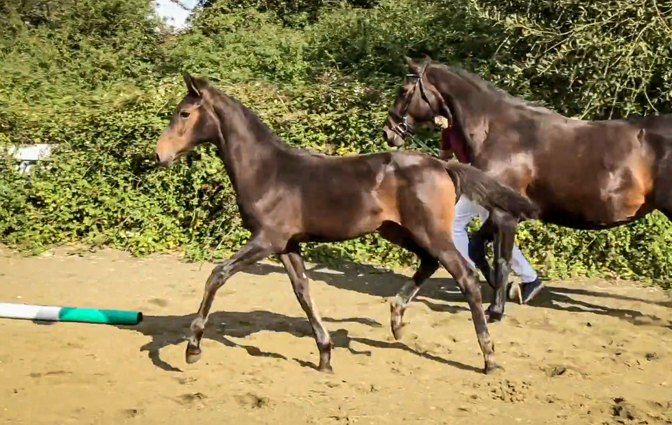 This wonderful filly is the half sister of the exciting young WBS-UK licensed stallion Lollipop, who himself achieved a Futurity Elite score as a 3yo and whose first crop this season have all been awarded the highly respected Futurity Gold Premium accolade. Like her brother, she convinces with three expressive, naturally uphill and elastic gaits. A dream vet mark of 9 and 9.25 indicates that this is a serious investment opportunity for the future.